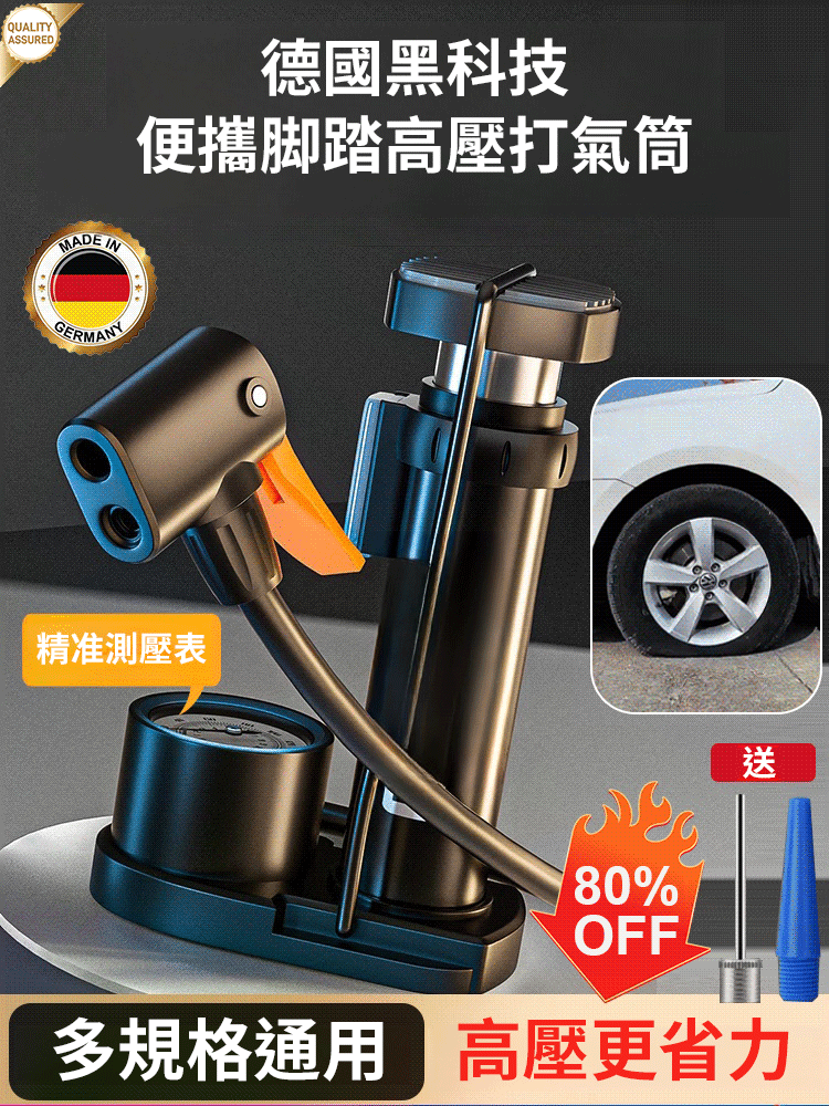 2分鐘前德國黑科技!輕巧便攜、腳踏省力的高壓打氣筒!強勁高壓,快速充氣,各種車輛、球類都能搞定! - 【熱賣爆款】1入組$799