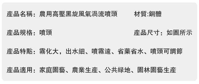 半小時前農用高壓黑旋風氣渦流噴頭 - 【活動特惠】3件入 NT$999 均價$333